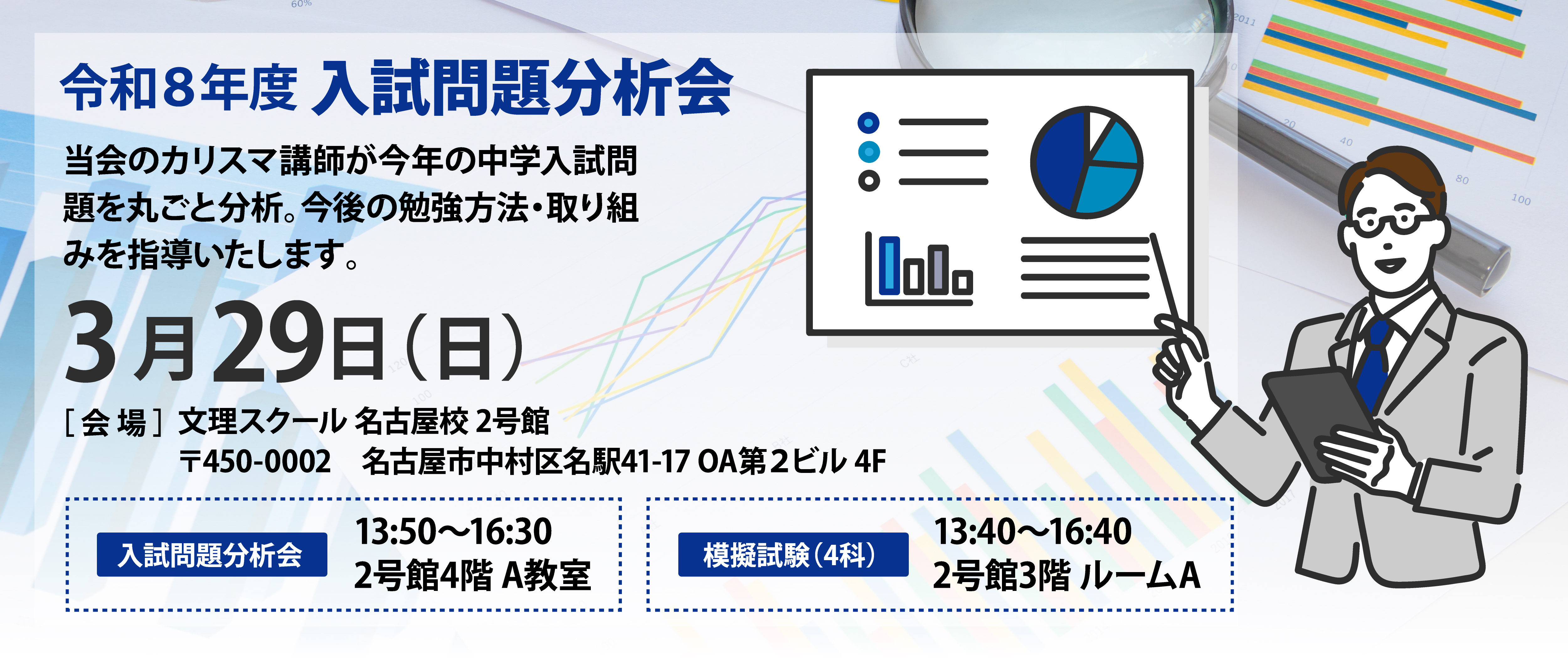 過去3年間の入試デ-タ-(配点・平均点・配点・合格最低点など)各ページに学校ごとの対策問題情報も掲載しております 大阪 高槻中学校 四天王寺中学校 大阪星光学院中学校 京都 同志社中学校 洛南高校附属中学校 洛星中学校 奈良 東大寺学園中学校 西大和学園中学校 兵庫 六甲中学校 灘中学校 甲陽学院中学校 神戸女学院中学校 関西学院中学部 愛知 南山中学校女子部 南山中学校男子部 名古屋中学校 愛知中学校 愛知工業大学名電中学校 愛知淑徳中学校 春日丘中学校 東海中学校 椙山女学園中学校 滝中学校 聖霊中学校 金城学院中学校 三重 高田中学校 鹿児島 ラ・サール中学校 愛媛 愛光中学校 単元別合格問題集 単元ごとに詳しく細かく対策ができます。第一志望の対策に向いてます。 年度別中学過去問解説集 各学校の過去問題集第2志望、第3志望の学校向けに対策していただくのに向いてます。 分野別合格問題集 苦手の克服全国難関中学と東海エリアの中学校の問題を網羅スキルアップに。 あとこれだけ合格問題集 苦手分野をレベルを少しずつ上げながら、対策克服できる問題集です。 最後の10点をこれで補ってください。 小学5年生向け 中部地区の中学入試5年の算数の受験問題集です。 入試予想問題 30年を超える過去問研究を通じて、東海・滝・南女及び中堅上位校の入試傾向を的確に分析し出題予想をしています。 入試直前模試5回完成 過去に実施された模試5回分の問題をセットにした愛知県中堅上位校向け入試直前用問題集です。 合格福袋 受験生に贈る厳選30題、入試予想家伊東辰夫先生のノウハウを凝縮した特別な算数の予想問題群です。 2026.1.23 お知らせ 「2025予想問題:南女」に誤りがございました。 2026.1.16 お知らせ 「予想問題:愛知淑徳・金城・椙山・愛知・聖霊・春日丘 対象」に誤りがございました。 2026.1.14 お知らせ 「南山女子部 令和3年 理科」に誤りがございました。 2026.1.12 お知らせ 「甲陽学院 令和4年 理科」の解答解説に誤りがございました。 2026.1.9 インフォメーション 2026年中学受験直前に役立つ問題集 youtubeで内容の紹介をご覧いただけます